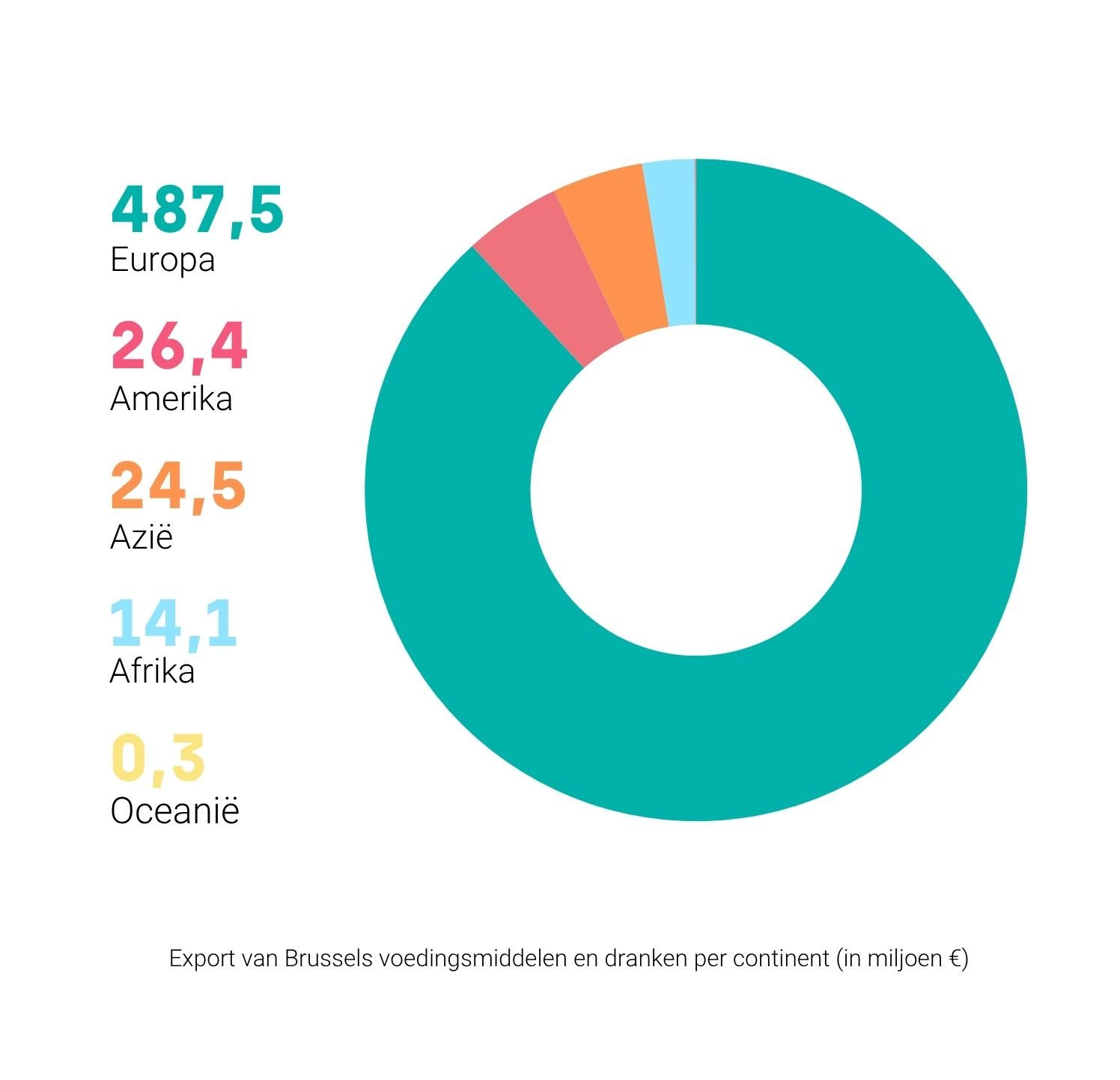 Maar liefst 84% van de export (487,5 miljoen euro) blijft binnen de Europese Unie. Onze belangrijkste afzetmarkten zijn: